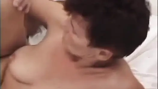 Vintage - seks threesome sama gadis dengan memek berbulu dan berbagi sperma