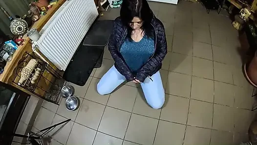 Legging kulit pink & cameltoe menggoda di dapur